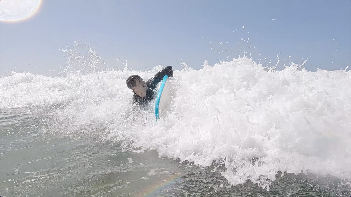 Hereâs me somehow looking like the surfer emoji on a larger wave đ