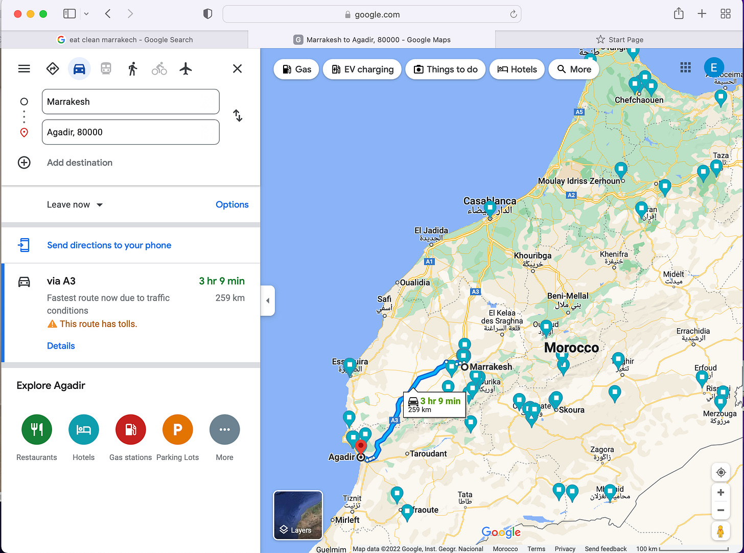 For lunch, I often go to a place around the corner from my office called Eat Clean Maroc - I couldn't find a good pic but its a little hole in the wall where they hand-make fresh food in front of you and everythingâs healthy and simple (my type of cooking).